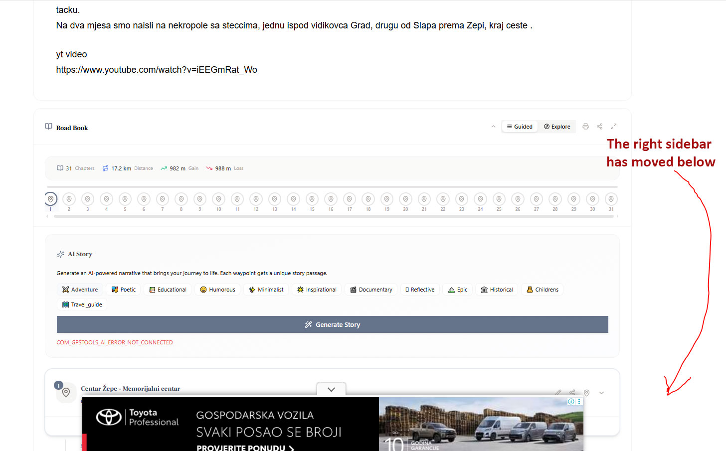 - If the GPS track has many waypoints, the template breaks and the right sidebar goes under the content (image wp.jpg attached)