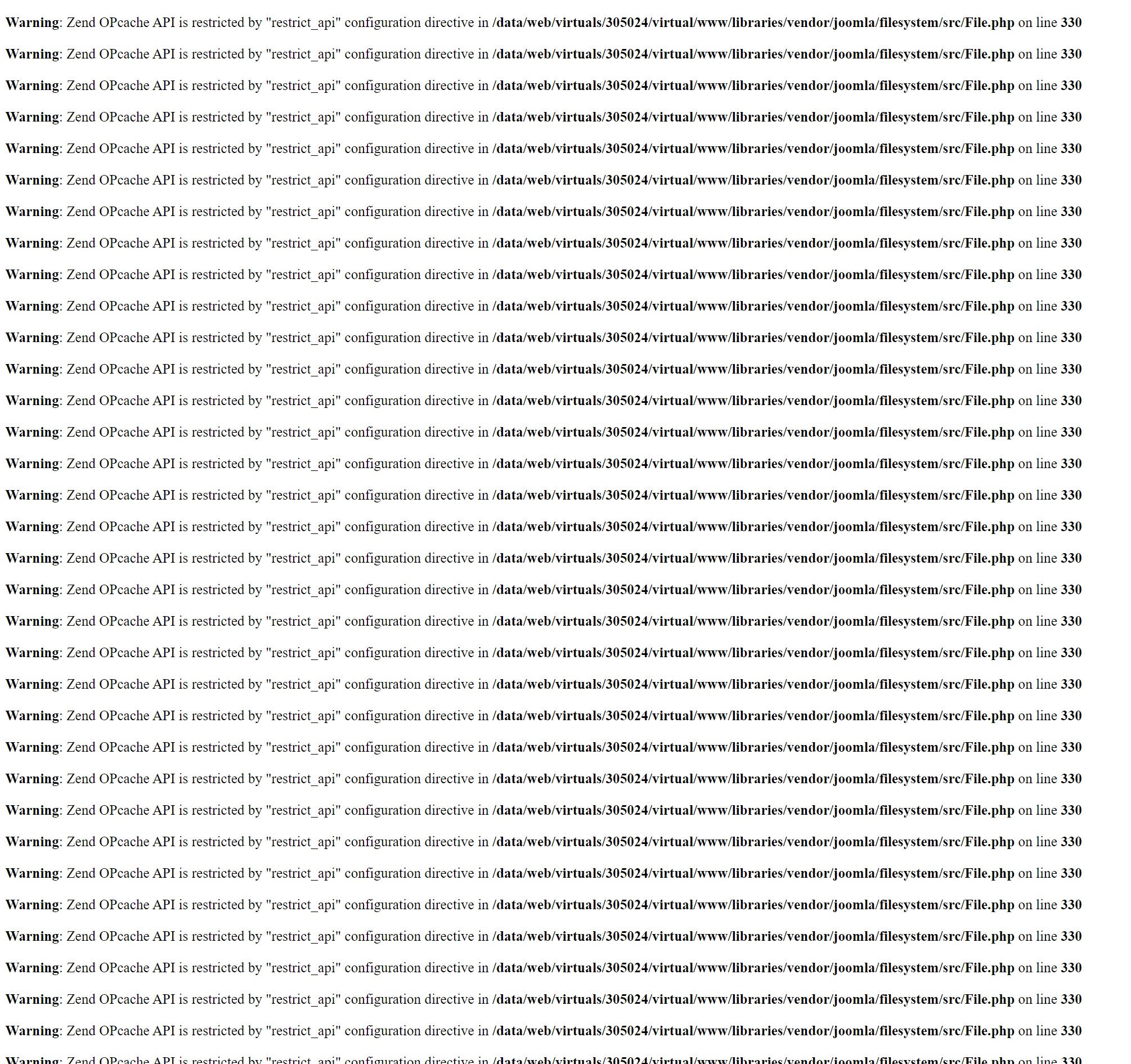 Warning: Zend OPcache API is restricted by "restrict_api" configuration directive in /data/web/virtuals/305024/virtual/www/libraries/vendor/joomla/filesystem/src/File.php on line 330