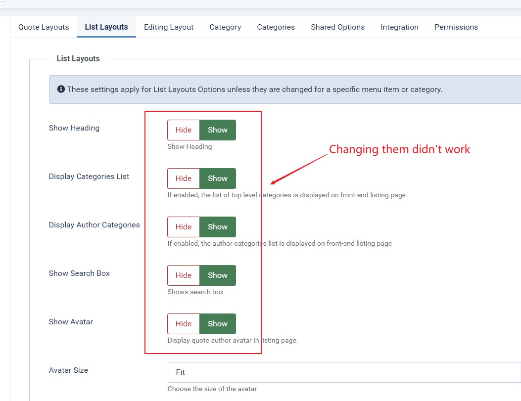 Community Quotes has so many configuration items that didn't work on j4. You change it and save it but nothing will happen, it will be the same as before.