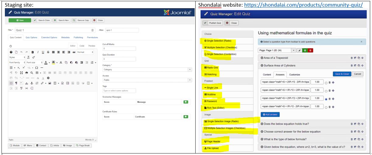 We've just setup a staging site and installed the Community Quiz extension. Could you please help to advise why our Quiz Manager layout is different with the Shondalai website? May I know how to add the questions in Quiz Manager?