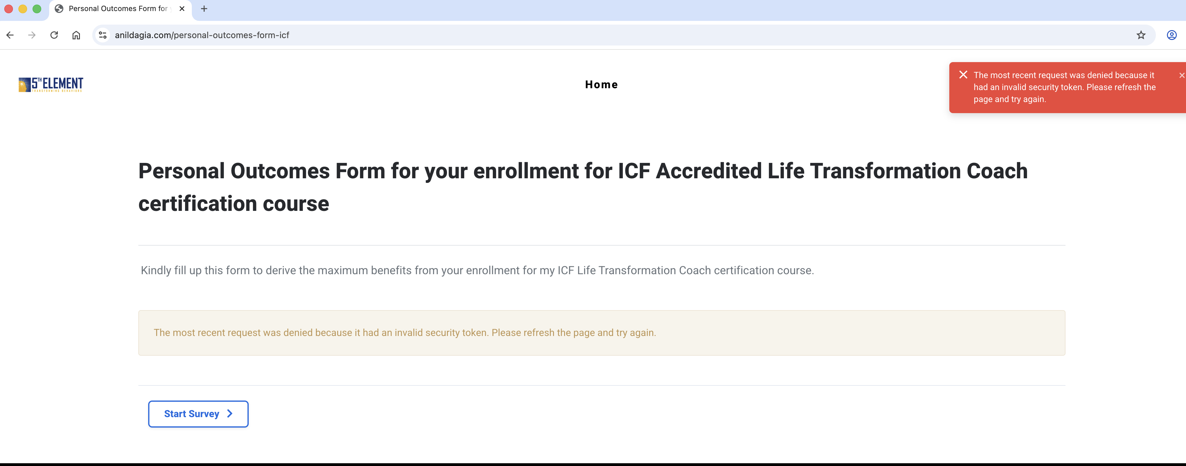 Then if I do a browser refresh and then again click on Start Survey - then this type there is no error.
