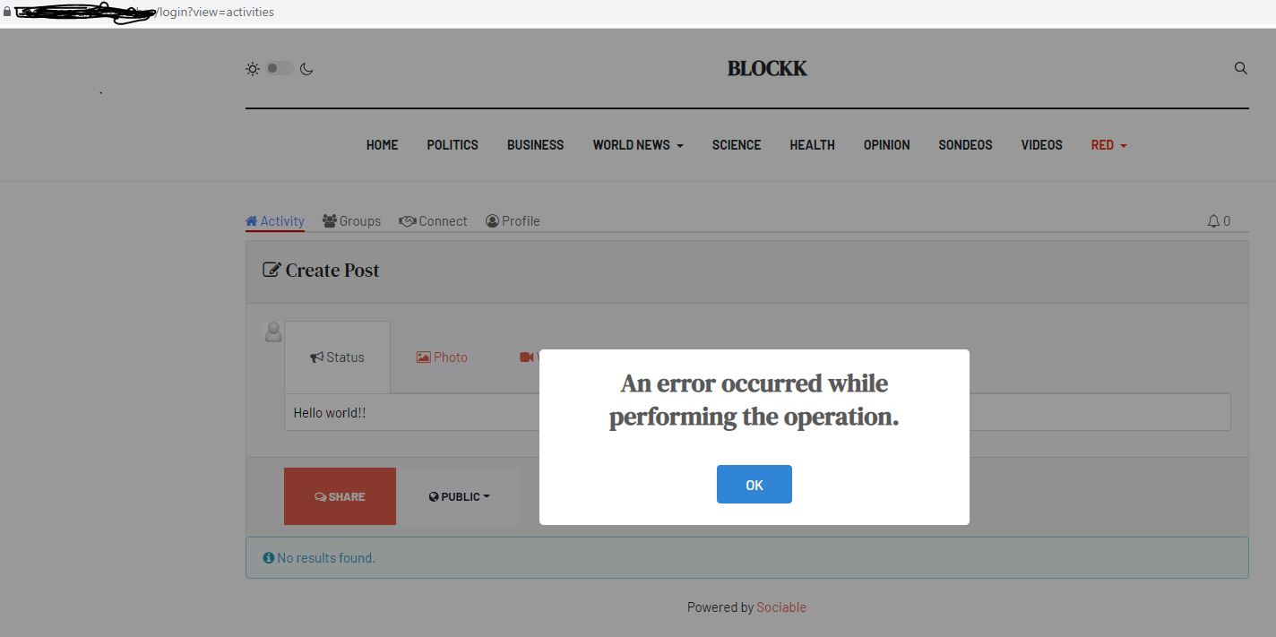 Have this one when trying to post an activity. Also when accessing with Edge browser I get a not complete rendered layout. The site runs on https. Will like you to take a look for general Sociable setup. In case I missed something.