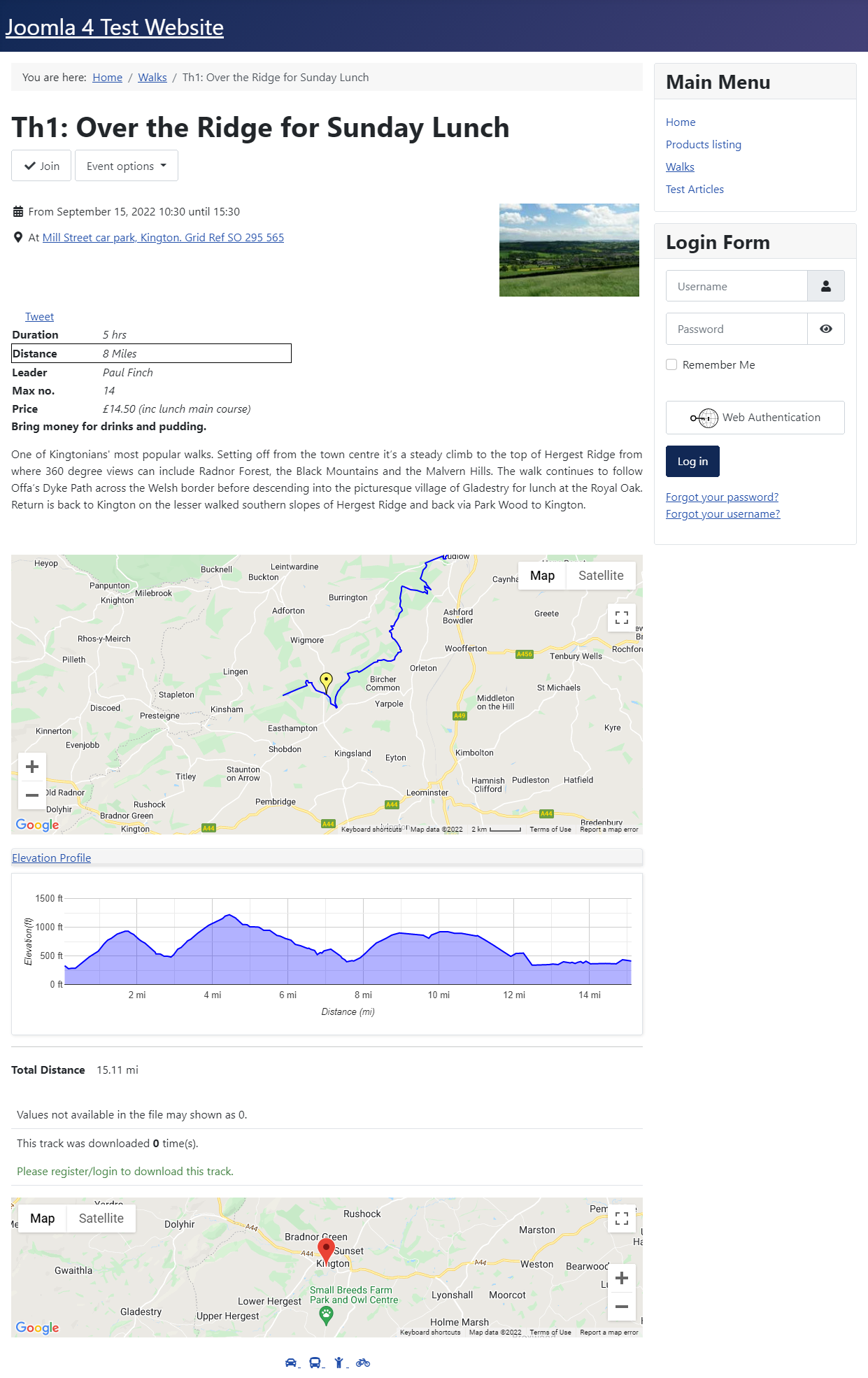 RSEvents: the Track button appears below the event editor but does not insert the track reference. So I manually inserted by copying from the above article. However the track and the elevation profile do both display correctly.