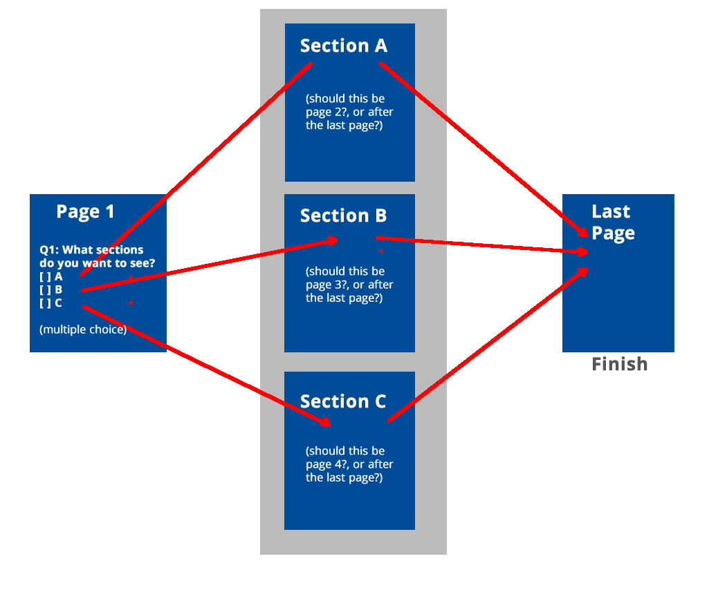 If the choose just A, they go to section A, skip over B & C, then finish.