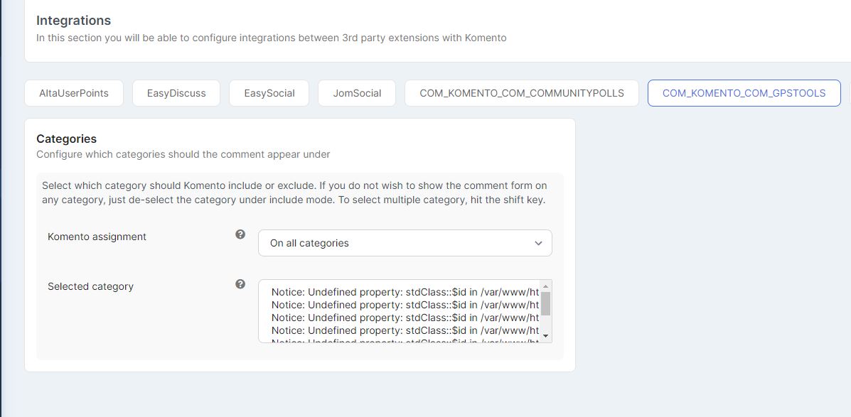 In addition to the categories error at Komento integration (CP, GPSTools), have noticed when I try to add the Komento Disable button into GPSTools track article nothing happens. Regular Joomla articlesadd the button correctly. In addition I observed two instances of Komento comments in a track. I mean comento box was repeated.