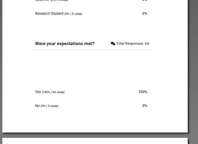 When using the advanced filtering and using the print/download function, it still prints all of the responses instead of just the filtered results. The only way to print the filtered results is to print the screen which has the same issues as above, due to it cutting off portions of the responses at the top and bottom of the page.