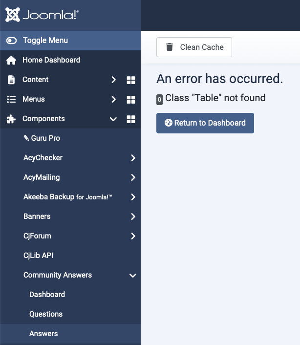 - Issuess: Community Answers. Answers > 0 Class "Table" not found (image1 + 2 upload; in Safari)