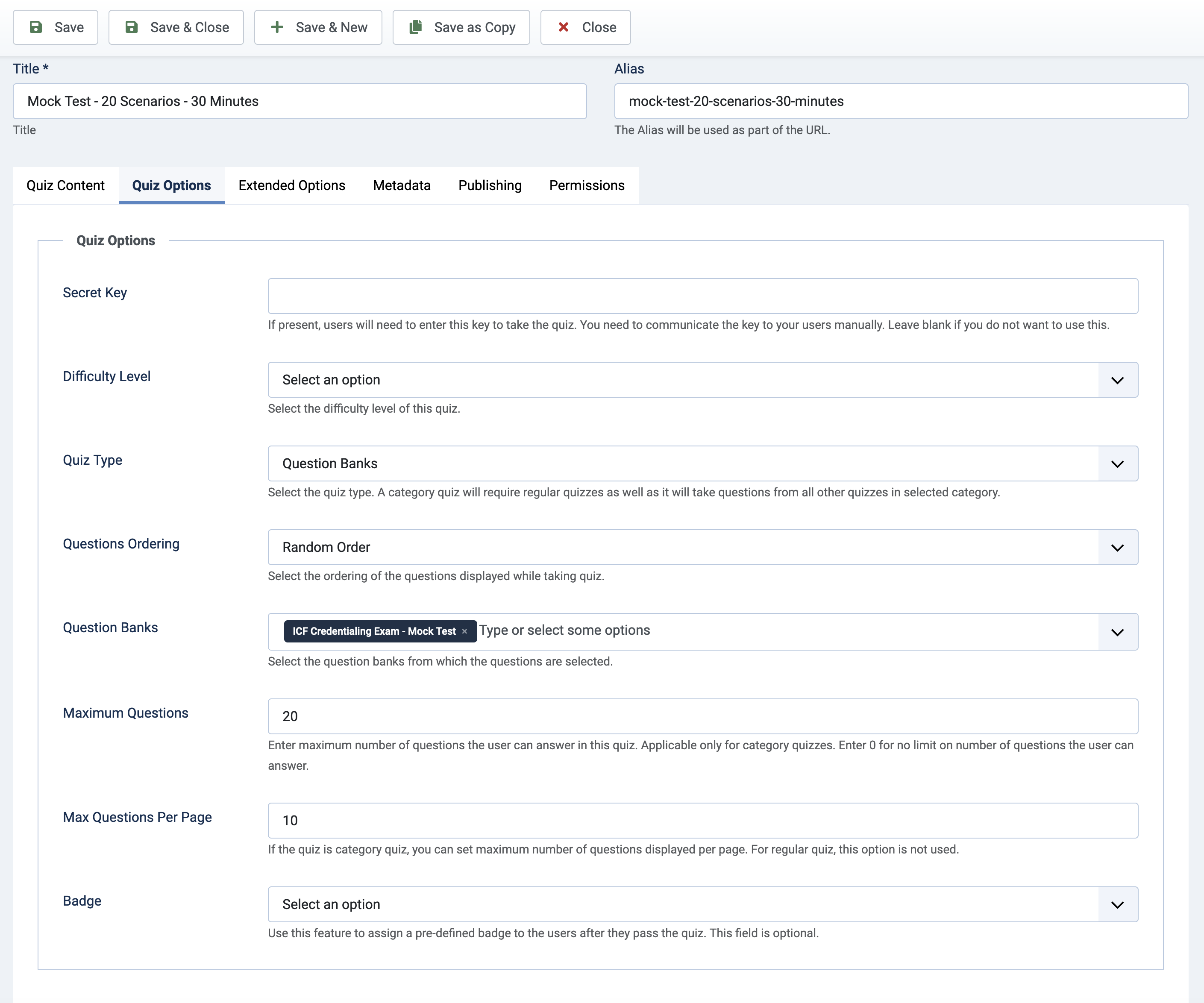 - Lot more questions than 20. These questions are left as unmarked or unanswered by user. These are all sequenced as per the question id in the database. These are not randomized as configured in the quiz itself.