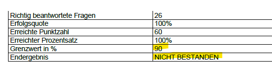 Hi, when a user passes a quiz, the responses website says "passed" but the generated PDF report says "failed". As you can see in the screenshots, i have reached 100% correct answers and 90% is the minimum to pass. What did I do wrong?