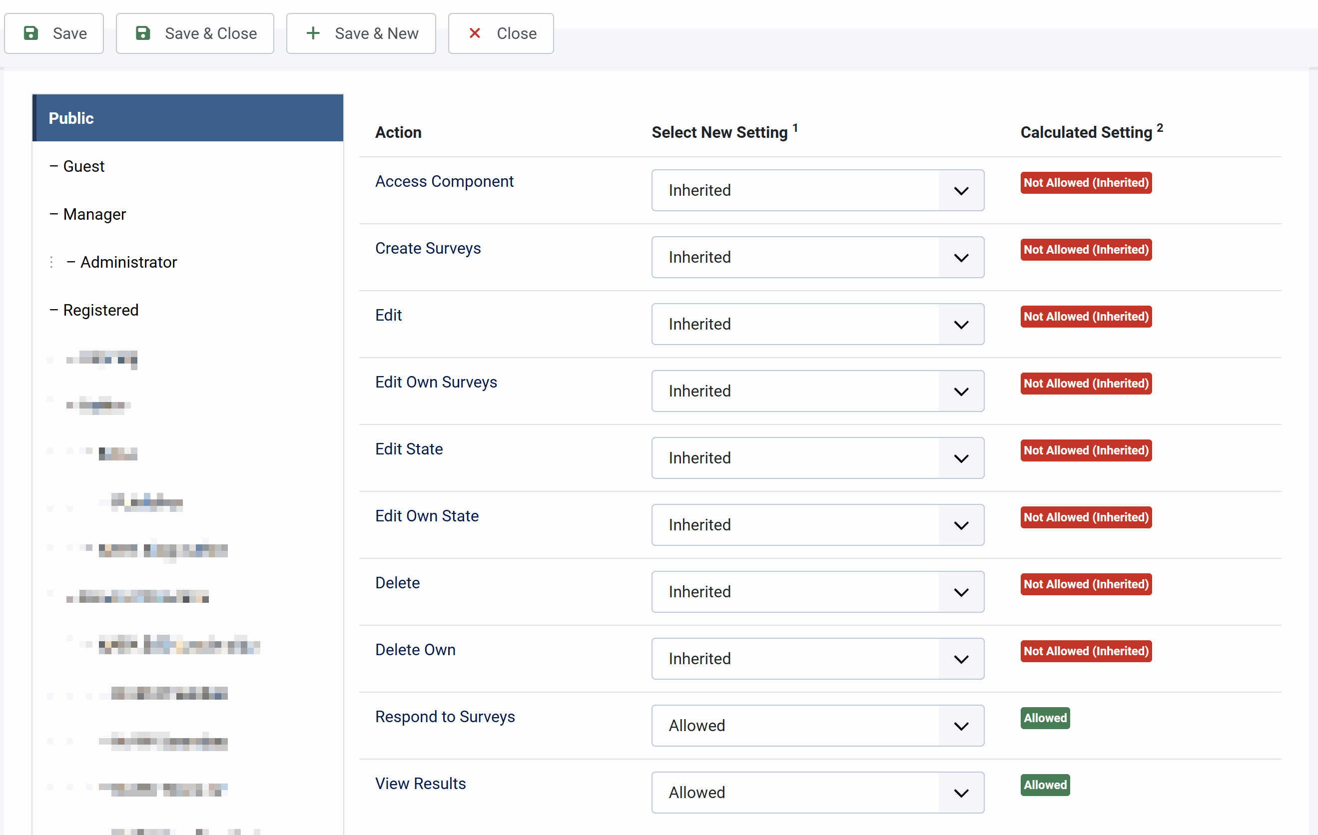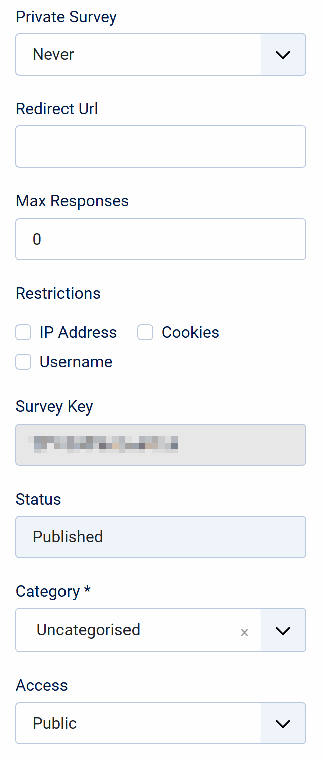 I've ensured that the permissions allow public to respond to surveys and view results (screenshots attached).