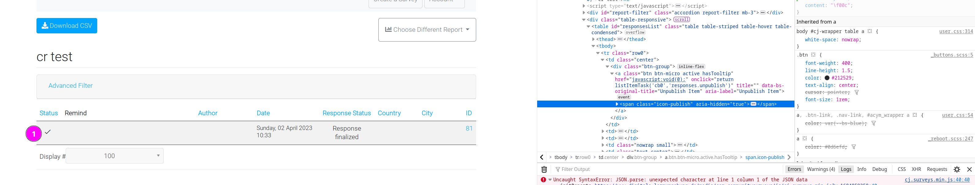 Uncaught SyntaxError: JSON.parse in layout=responses