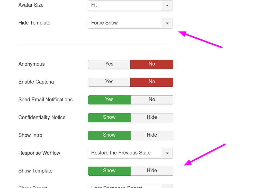 What is the difference in "Hide Template"?