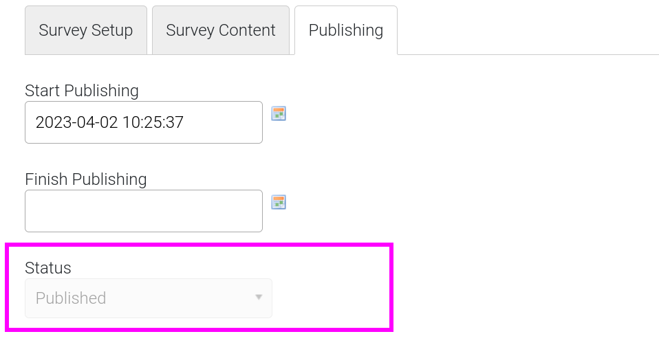 The survey has questions and is published.