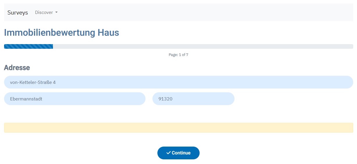 When starting a survey here von Kameke Immobilien (von-kameke.de) and after putting in adress data, the user needs to click twice on continue, before survey moves on. Also, a colored area appears at the bottom, which does not appear to be right (see attachment).