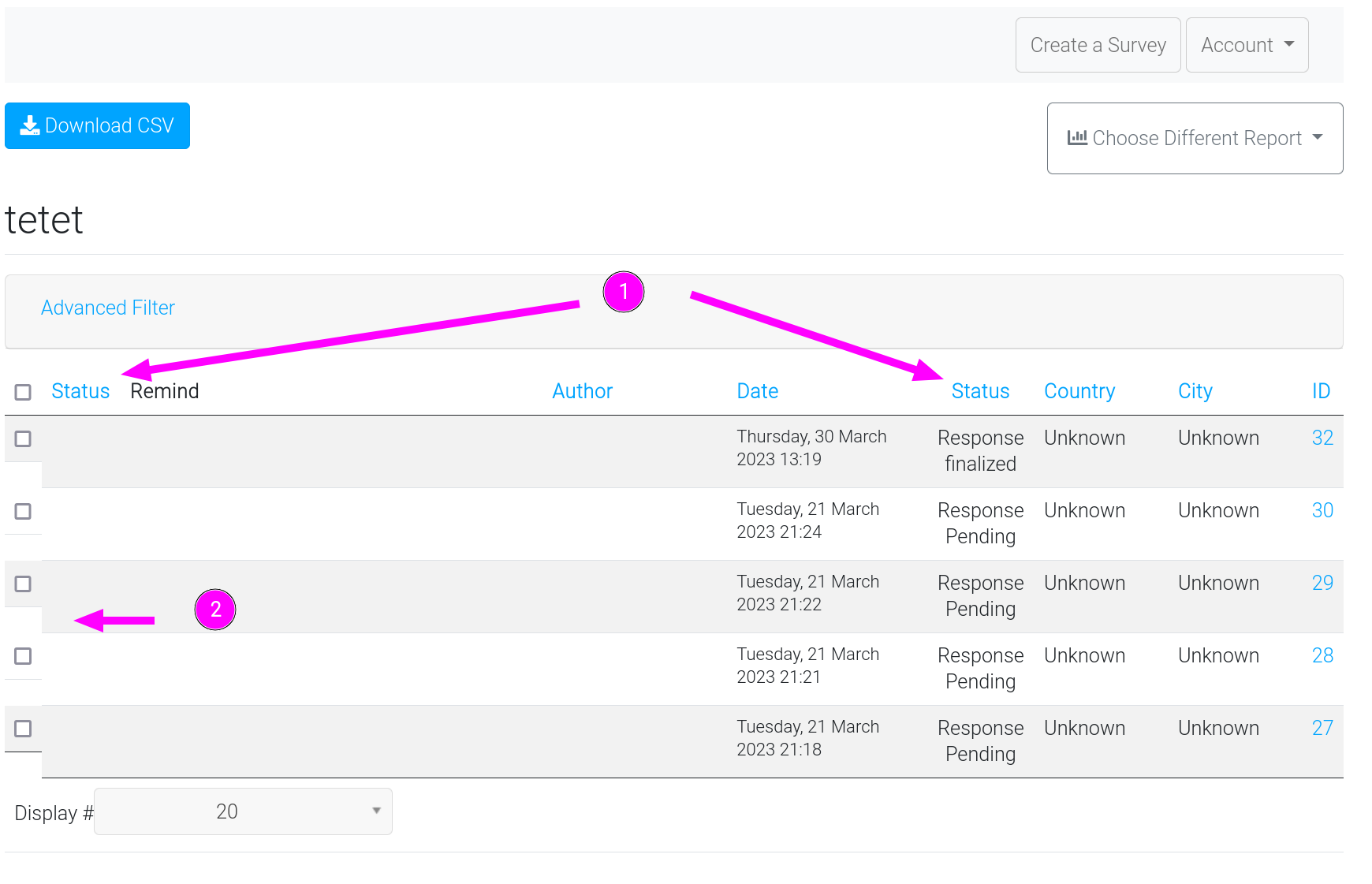 In the reports I see 2 status columns and what is up with that step?