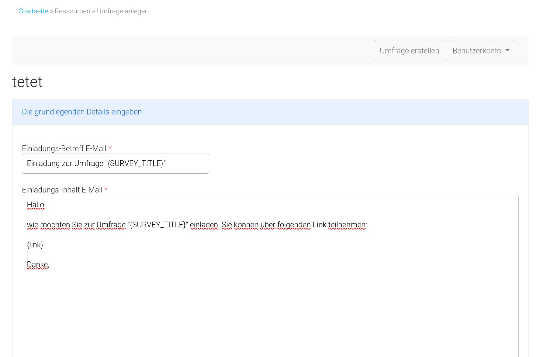 Why is SURVEY_TITLE and {link} not substituted in the invitation email?